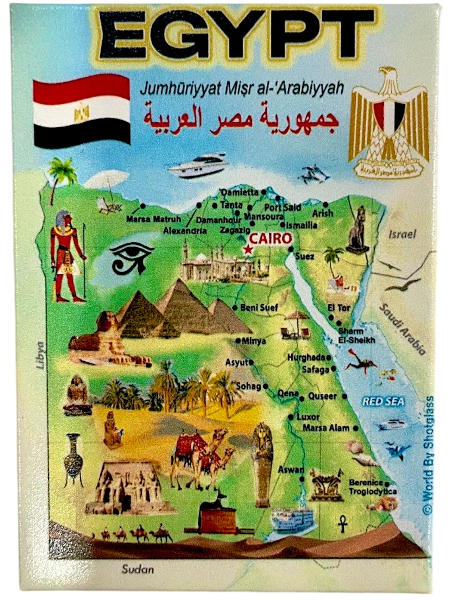 Egypt Graphic Map and Attractions Souvenir Fridge Magnet 2.5" X 3.5"