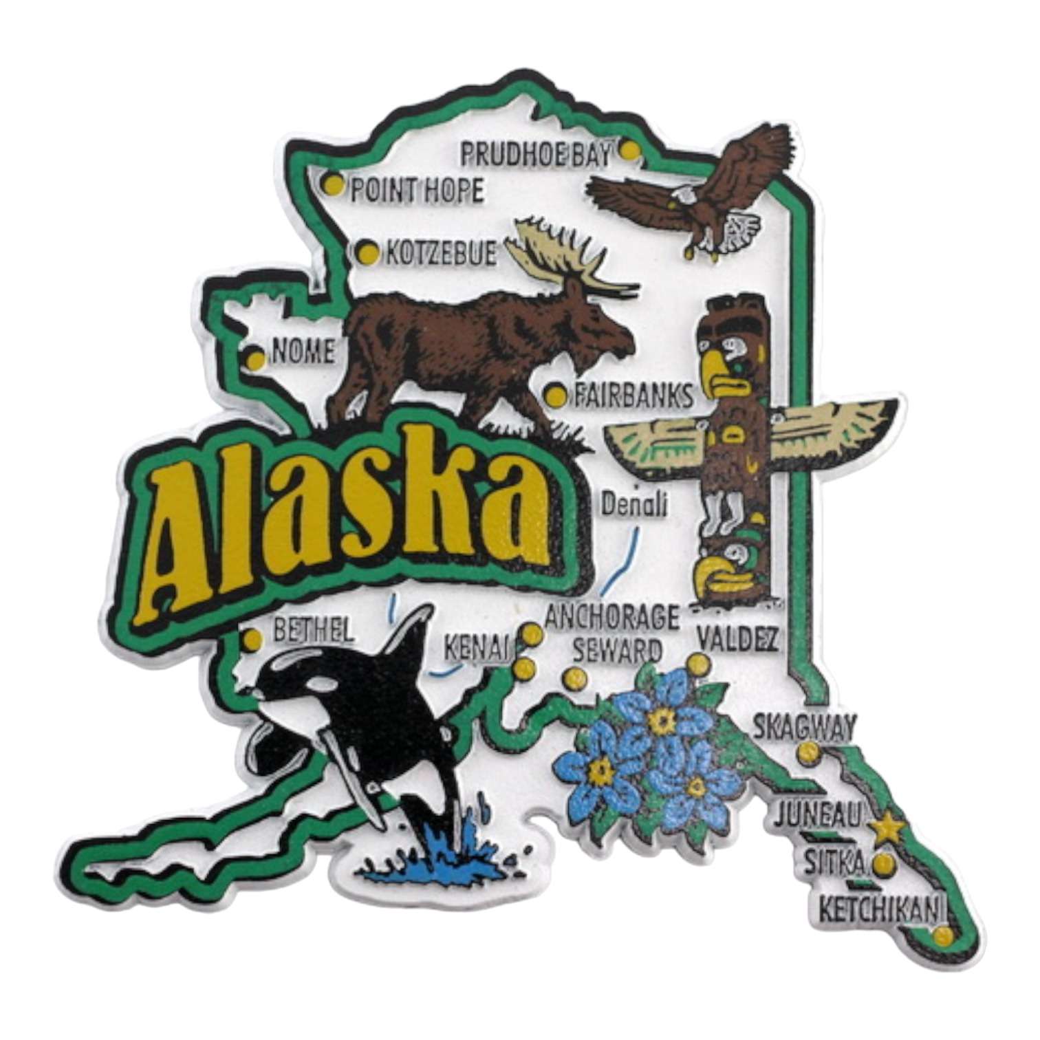 Here is a brand new, rare and a hard to find collector's item: Alaska State Map and Landmarks Collage Fridge...