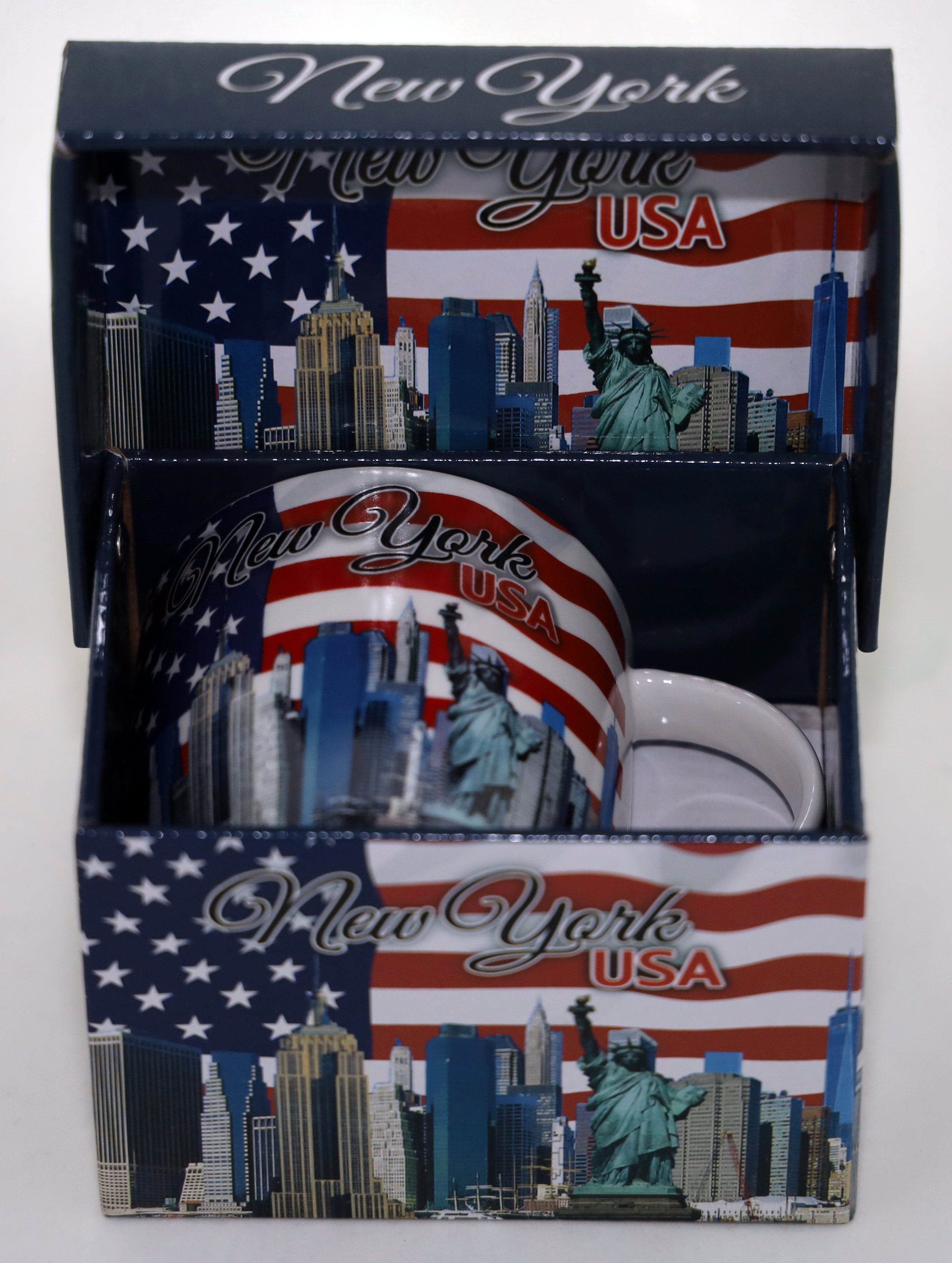 New York USA Flag and Skyline Boxed Coffee Mug 12 oz