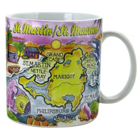 St. Martin Caribbean Map Souvenir Collectible Large Coffee Mug (4"H x 3.75"D) 16oz